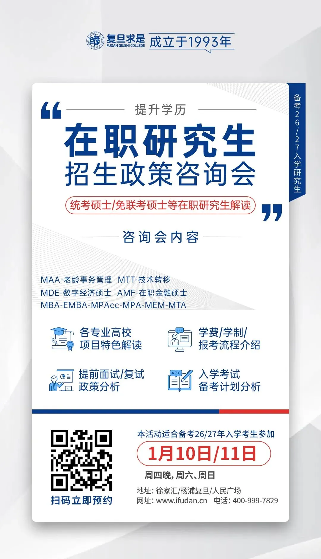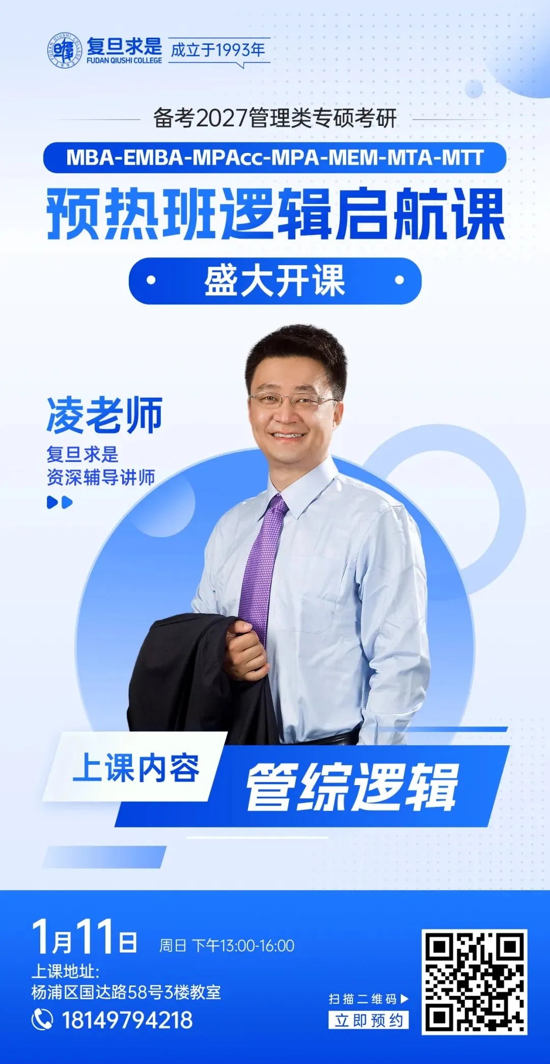1月11日周日下午13:00,复旦求是早鸟逻辑启航课开讲,为您解读诸多备考问题,帮助您高效备考2027。