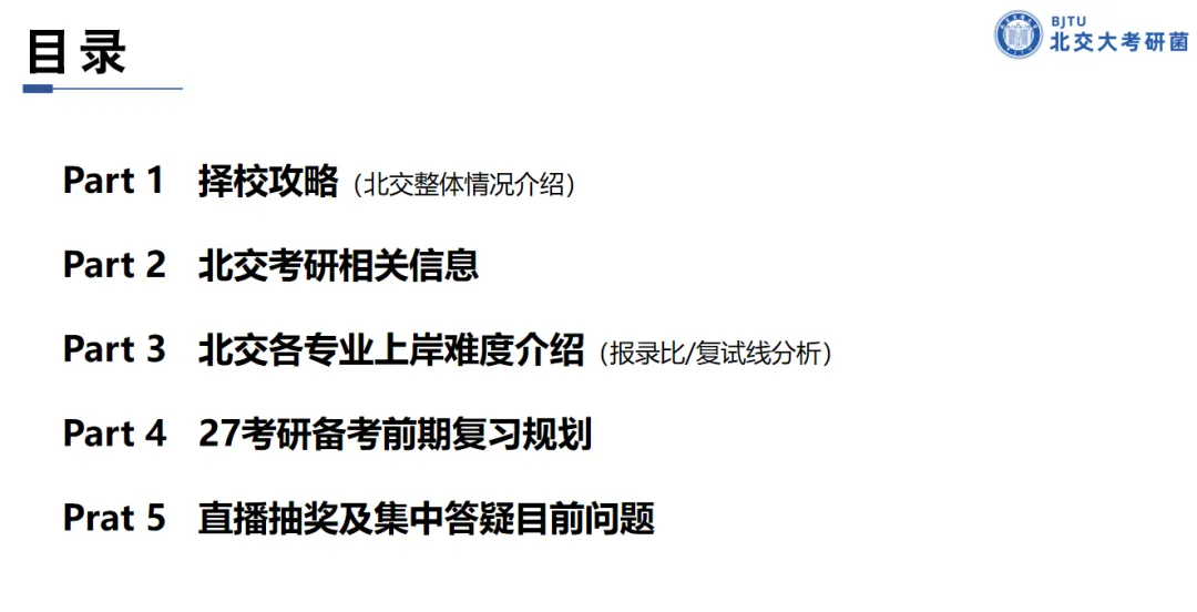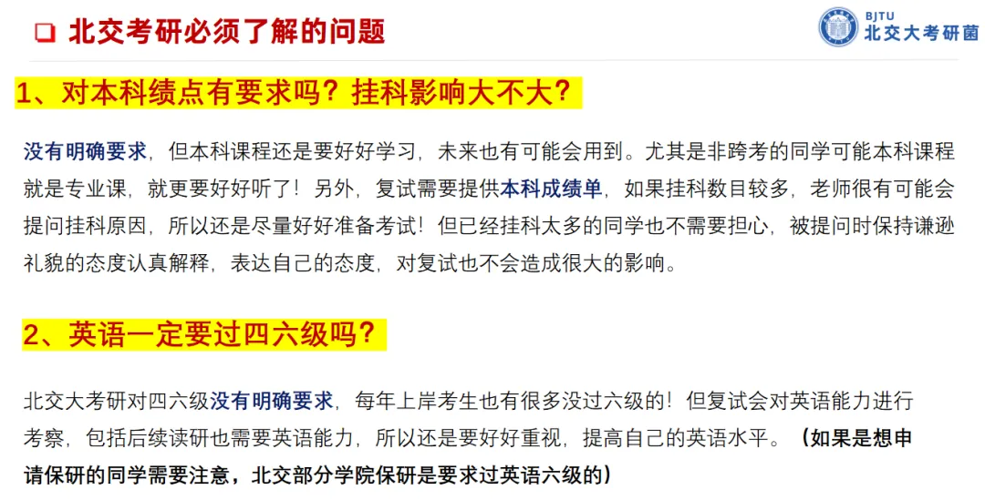 本次讲座将会为大家全方面总结考北交需要了解到的信息,这次综合了大家之前填过的问卷重复率较高的问题,会给大家一一解答!
