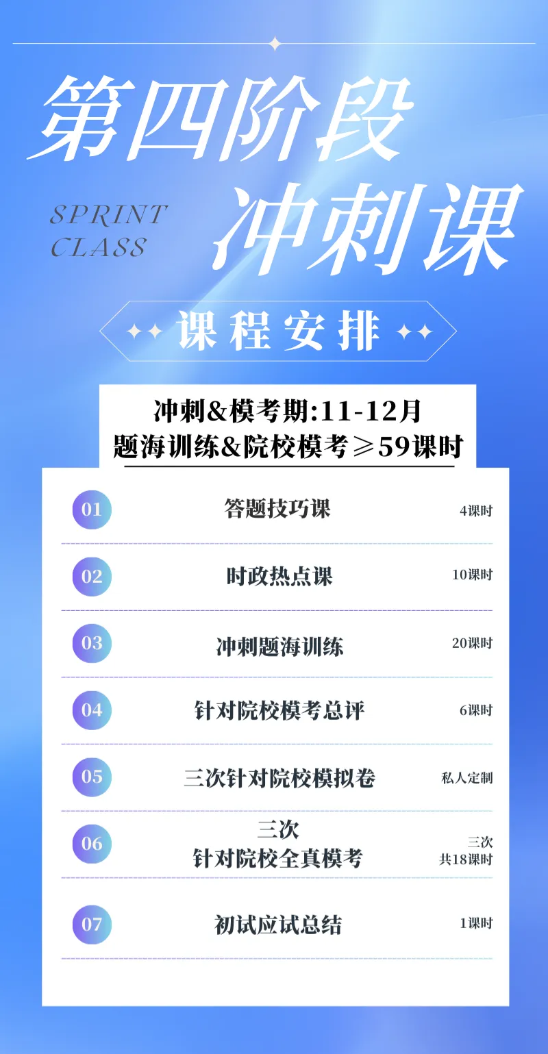 4.冲刺阶段+针对院校模考课程(11-12月)