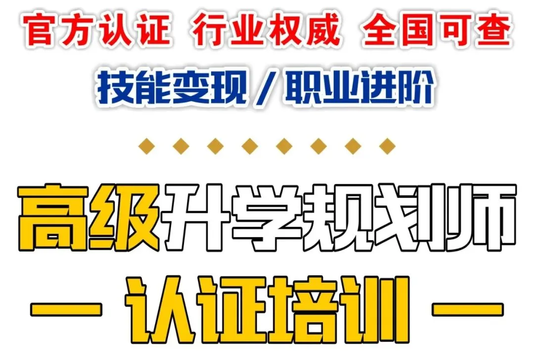 【报名条件】:高中及以上学历,持初级证或1年升学规划经验。