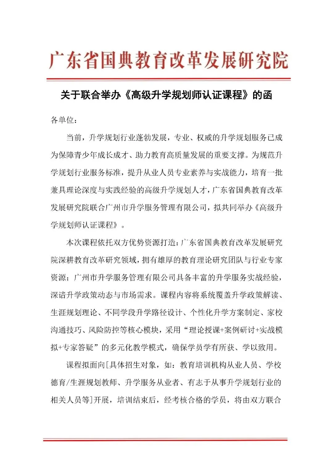 随着新高考改革深化、职业教育升级,每年超百万家庭急需专业升学规划服务!但行业缺乏规范认证,从业者难以获客、技能变现难。现在,广东省国典教育改革发展研究院联合广州市升学服务管理有限公司(广州市升学服务管理中心),共同举办《高级升学规划师认证课程》,帮你快速成为持证专家,抢占行业风口!