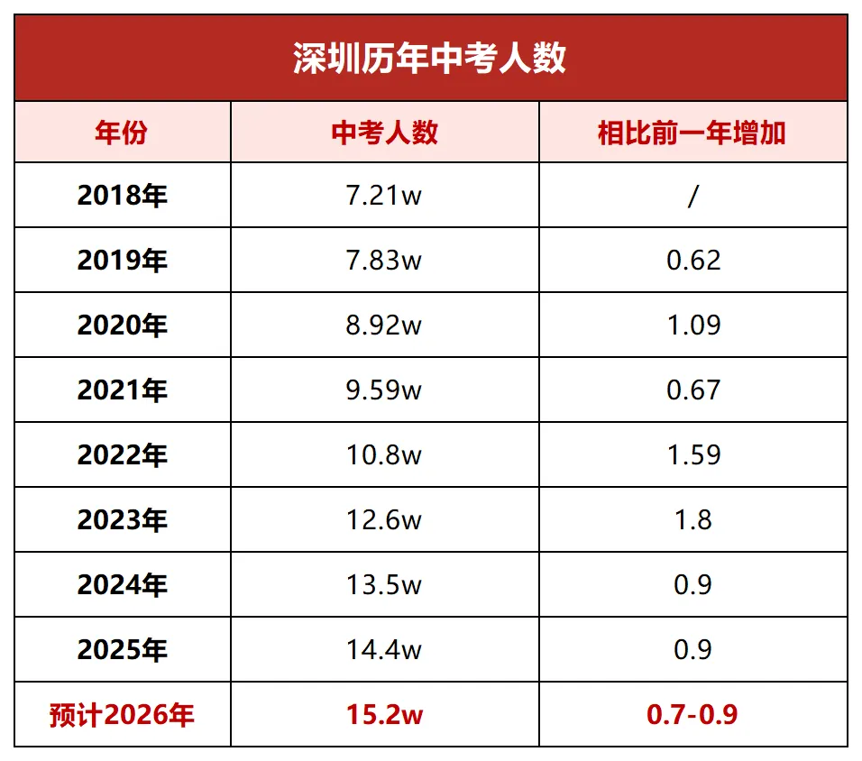 根据2018年至2025年的中考人数数据,可以看出基本每年增加约7千至9千人。若这一趋势延续,预计2026年中考人数将达到15.2万左右。这一数字不仅将刷新往年纪录,更意味着每位考生都将面临更为激烈的升学竞争。