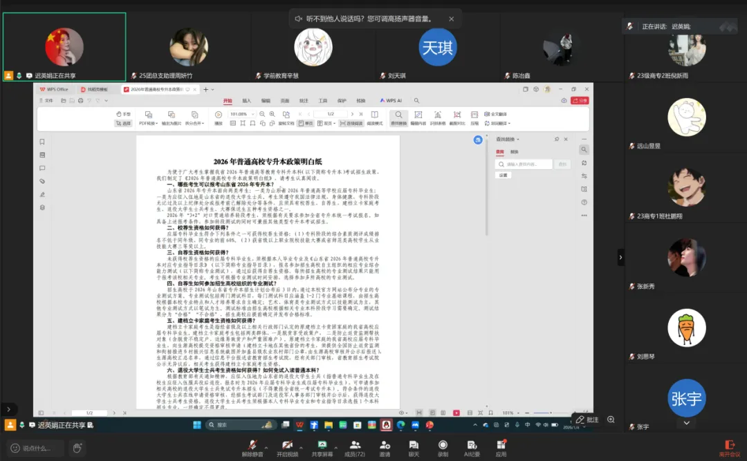会议伊始,迟英娟强调了专升本对学生学历提升、职业发展的重要意义,指出学院始终高度关注学生升学需求,此次会议旨在通过精准解读政策、分享备考经验,为学生搭建高效沟通平台,助力大家少走弯路、圆梦本科。