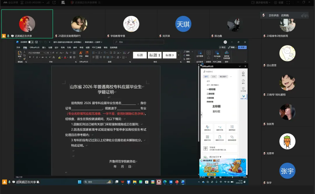 随后,重点围绕学籍信息核对、特殊群体政策、报考资格类型三大核心板块展开细致讲解。在学籍信息核对环节,明确要求全体考生务必在规定时间内登录学信网,核对个人姓名、身份证号、学历层次等关键信息,确保信息与身份证、学生证保持一致,对信息有误的学生,详细告知了学籍信息更正的流程、所需材料及提交时限,强调学籍信息的准确性是顺利报考的前提。针对特殊群体考生,专门解读了建档立卡家庭考生与退伍复学考生的政策,明确建档立卡家庭考生需提前准备户籍证明、建档立卡手册等材料,按要求完成专项资格审核,可享受相应的招生计划倾斜;退伍复学考生则需依据退役军人事务部门相关证明,办理免试或加分申请手续,确保政策红利应享尽享。