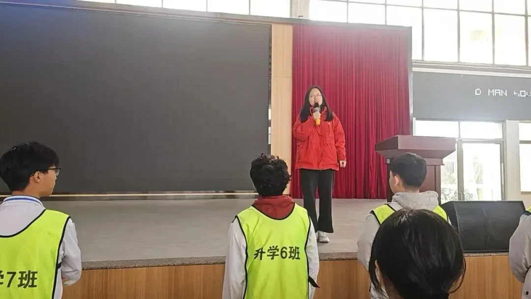 出征仪式在黄静部长的主持下正式拉开帷幕。她迈着坚定的步伐走上讲台,目光深情凝望台下满怀憧憬的学子们,细致入微地叮嘱高考注意事项——从证件携带的细节规范,到答题流程的技巧要领,再到考前心态的调适方法,句句恳切、字字入心。同时,黄部长以温情而铿锵的话语为学子们减压赋能,鼓励大家卸下包袱、轻装上阵,以最昂扬的姿态奔赴考场,用拼搏书写青春华章。