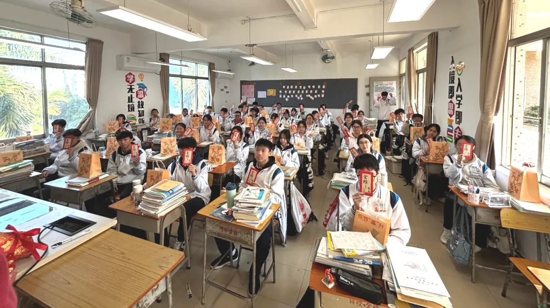 为给学子们注入满满元气,升学班班主任们精心筹备了“幸运红包”,逐一送到每一位学子手中。红包里装的不仅是小小的惊喜,更承载着老师们朝夕相伴的牵挂、无微不至的关怀与殷切厚重的期望,愿这份幸运加持,助力学子们从容应考、凯旋而归。