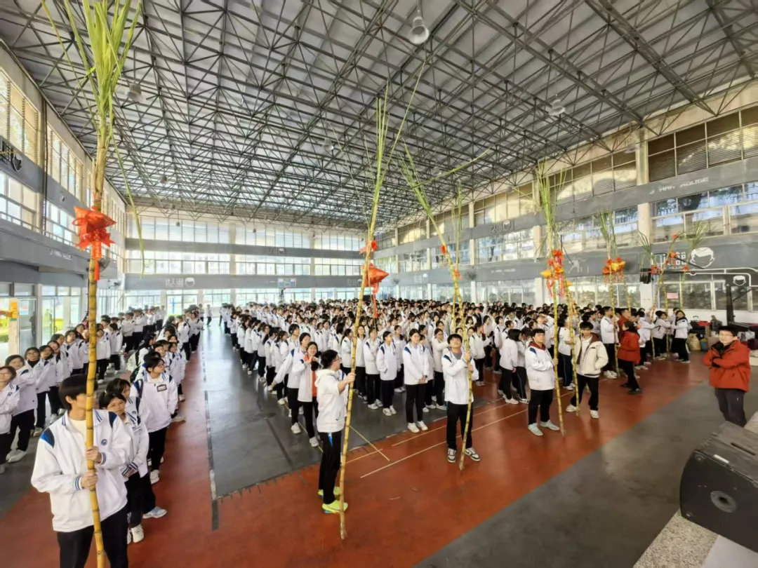 “少年自有凌云志,不负韶华逐梦行。”尧勇书记、潘志坚校长先后登台发表出征寄语。他们的话语如春风化雨,温暖人心;如战鼓催征,催人奋进。两位领导充分肯定了2026届学子三年来的不懈努力与成长蜕变,为大家加油鼓劲,激励学子们以自信之姿、从容之态迎接挑战。随后,领导们亲手为学子们派发“状元糖”,甜蜜的滋味在口中化开,更将学校的深切祝福种进学子心间,愿他们在高考中发挥出色、旗开得胜。