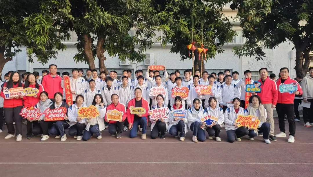 2026年1月9日,春潮涌动,梦想启航。我校升学与就业部2026届高考出征仪式在校园内隆重举行,处处洋溢着拼搏的热忱与奋进的力量。学校领导尧勇书记、潘志坚校长、黄剑华副校长、教务处陈辉主任、刘雪花副主任,亲临现场鼓劲助威,升学与就业部黄静部长携专业部全体师生齐聚一堂,共同见证这一热血激昂的启航时刻。