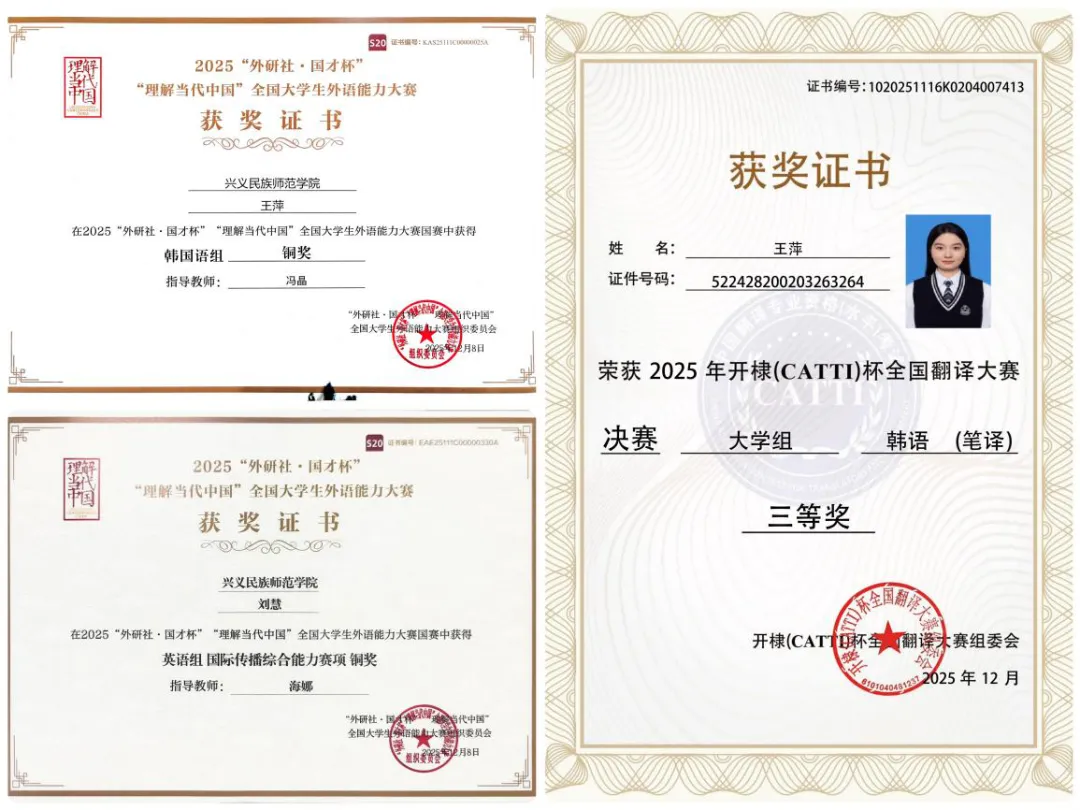 15.外语学院学子竞赛喜获佳绩。我校外国语学院学子在2025年“外研社·国才杯”“理解当代中国”全国大学生外语能力大赛全国总决赛和2025年CATTI杯全国翻译大赛决赛中荣获三等奖3项。