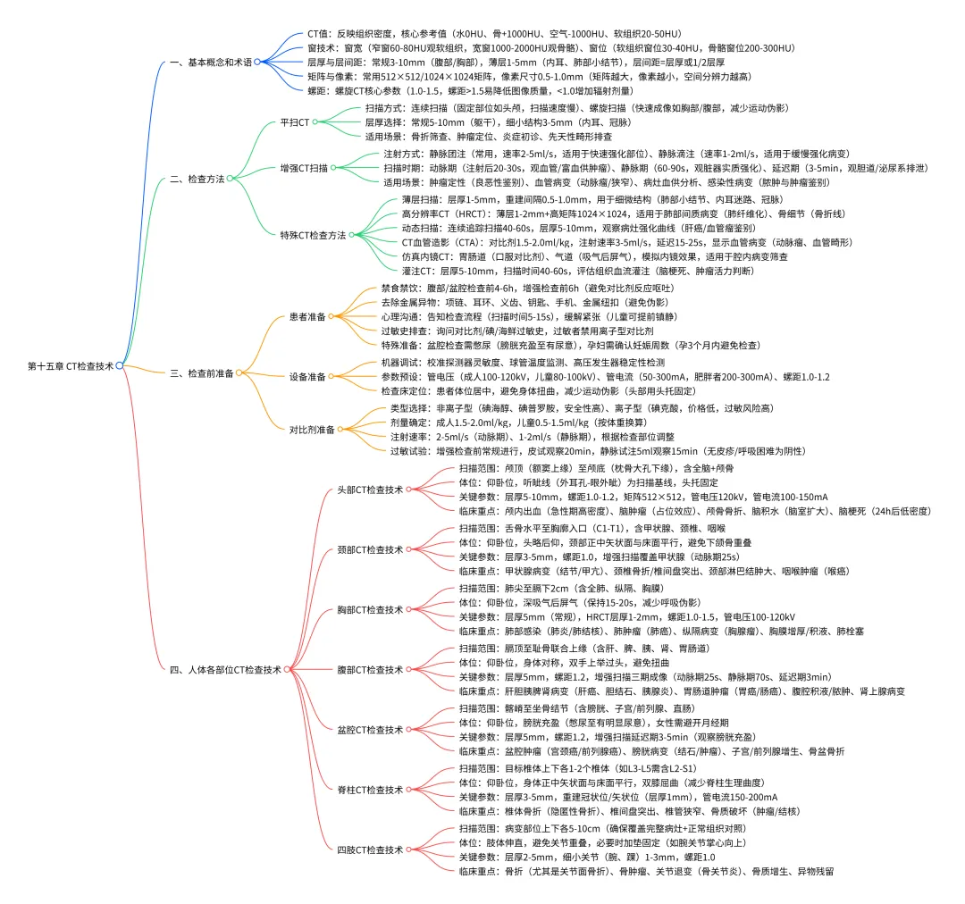>2026放射医学技术职称考试第十五章CT检查技术思维导图