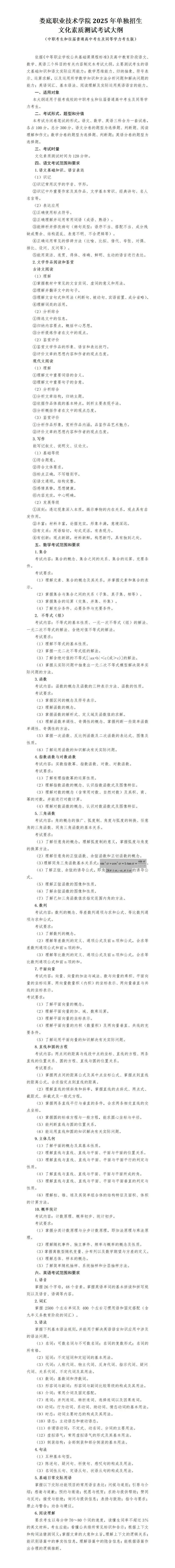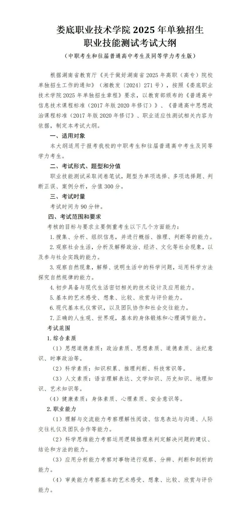 >2025年娄底职业技术学院单招考试大纲