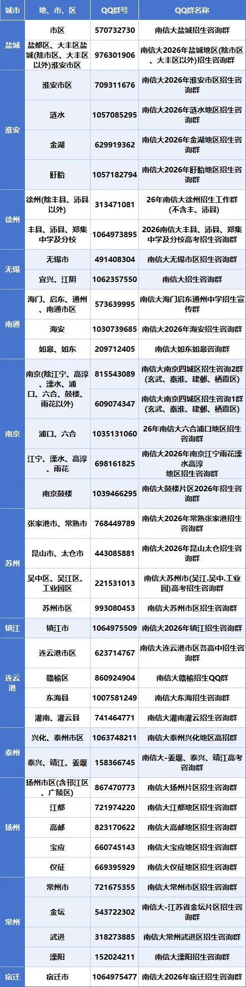 江苏省各地市招生咨询QQ群