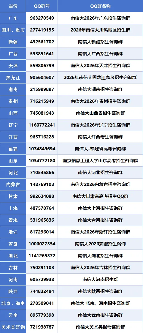 南信大招生QQ咨询群