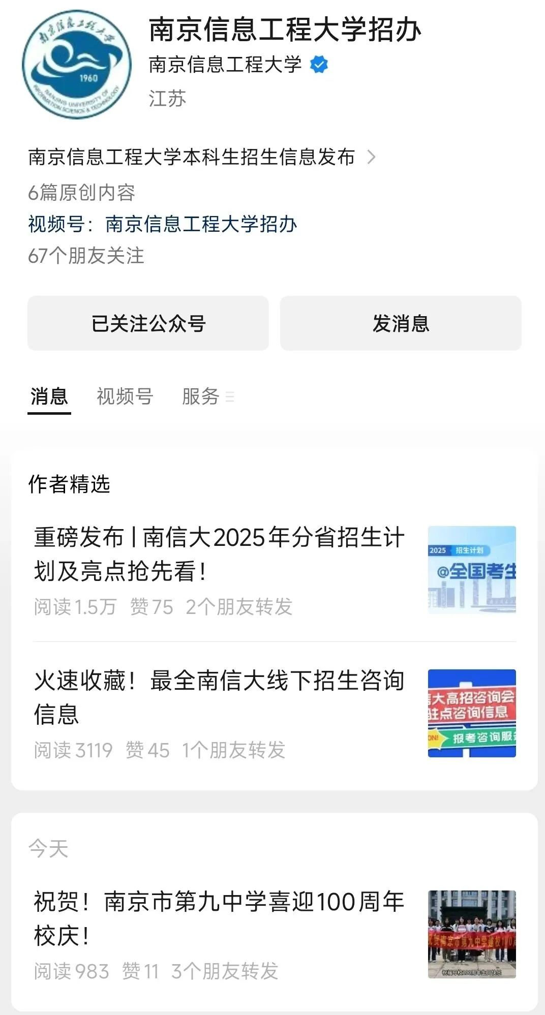南京信息工程大学招办微信公众号