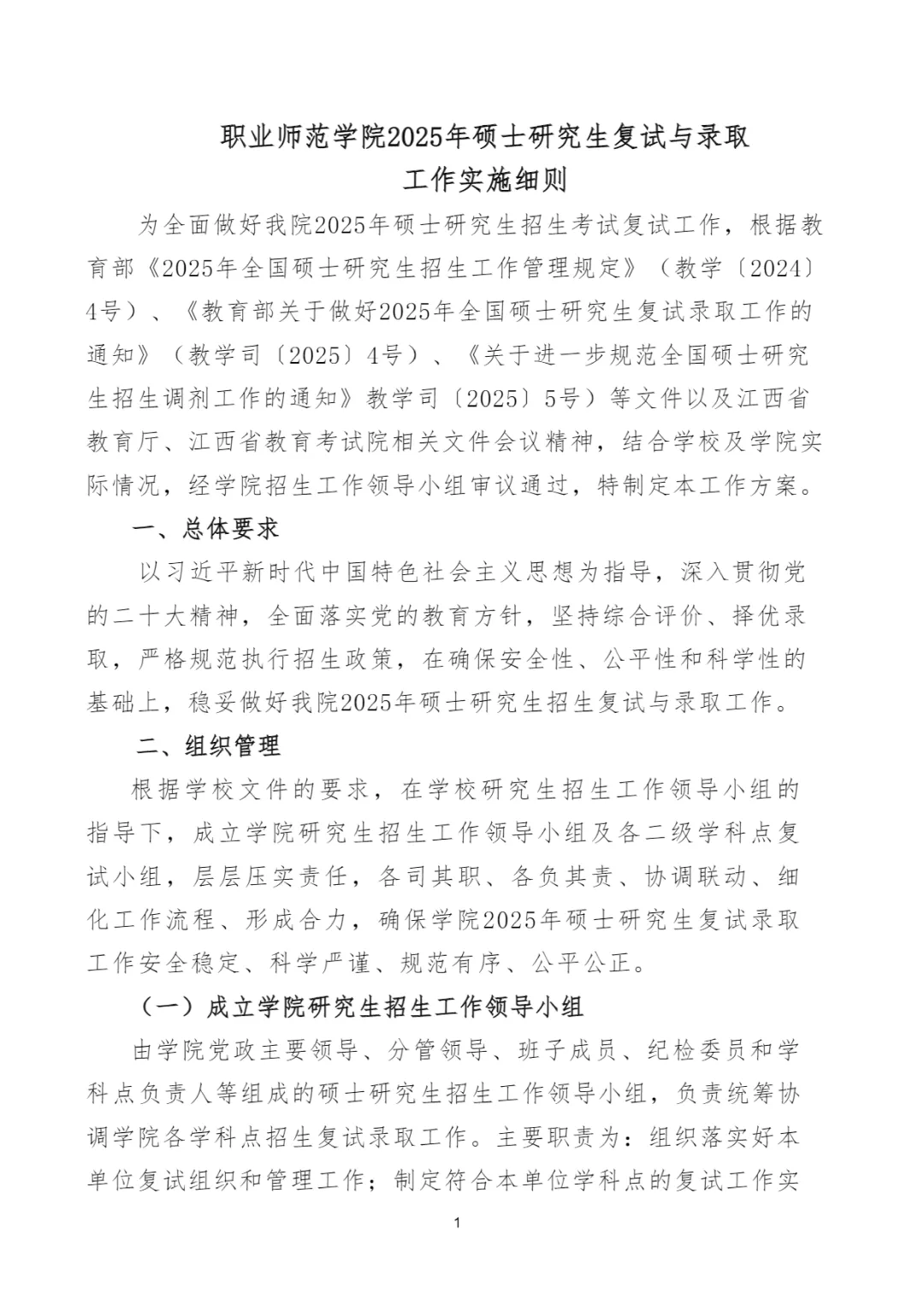 >考研复试丨江西农业大学职业师范学院2025年硕士研究生复试与录取 工作实施细则
