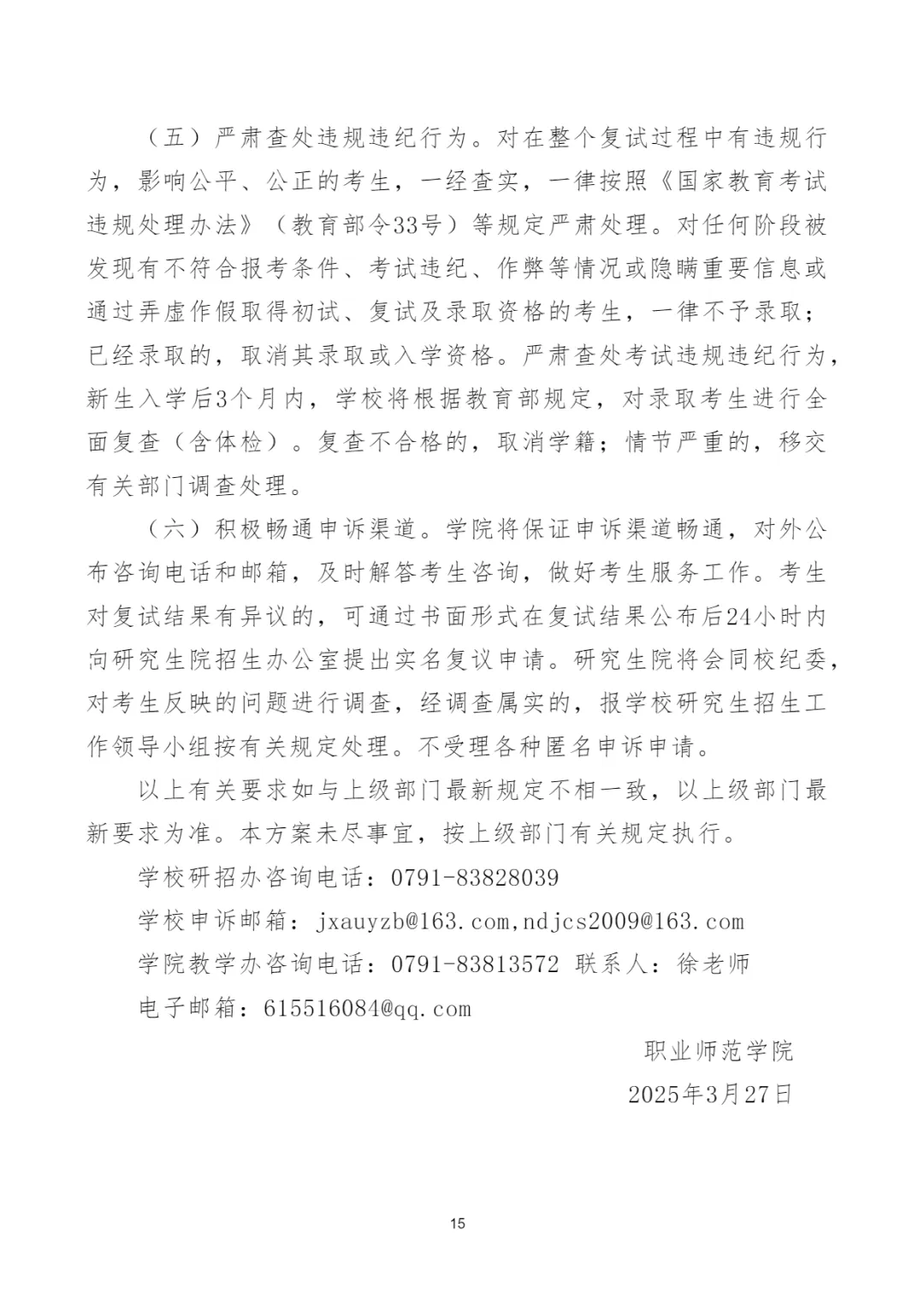 考研复试丨江西农业大学职业师范学院2025年硕士研究生复试与录取 工作实施细则