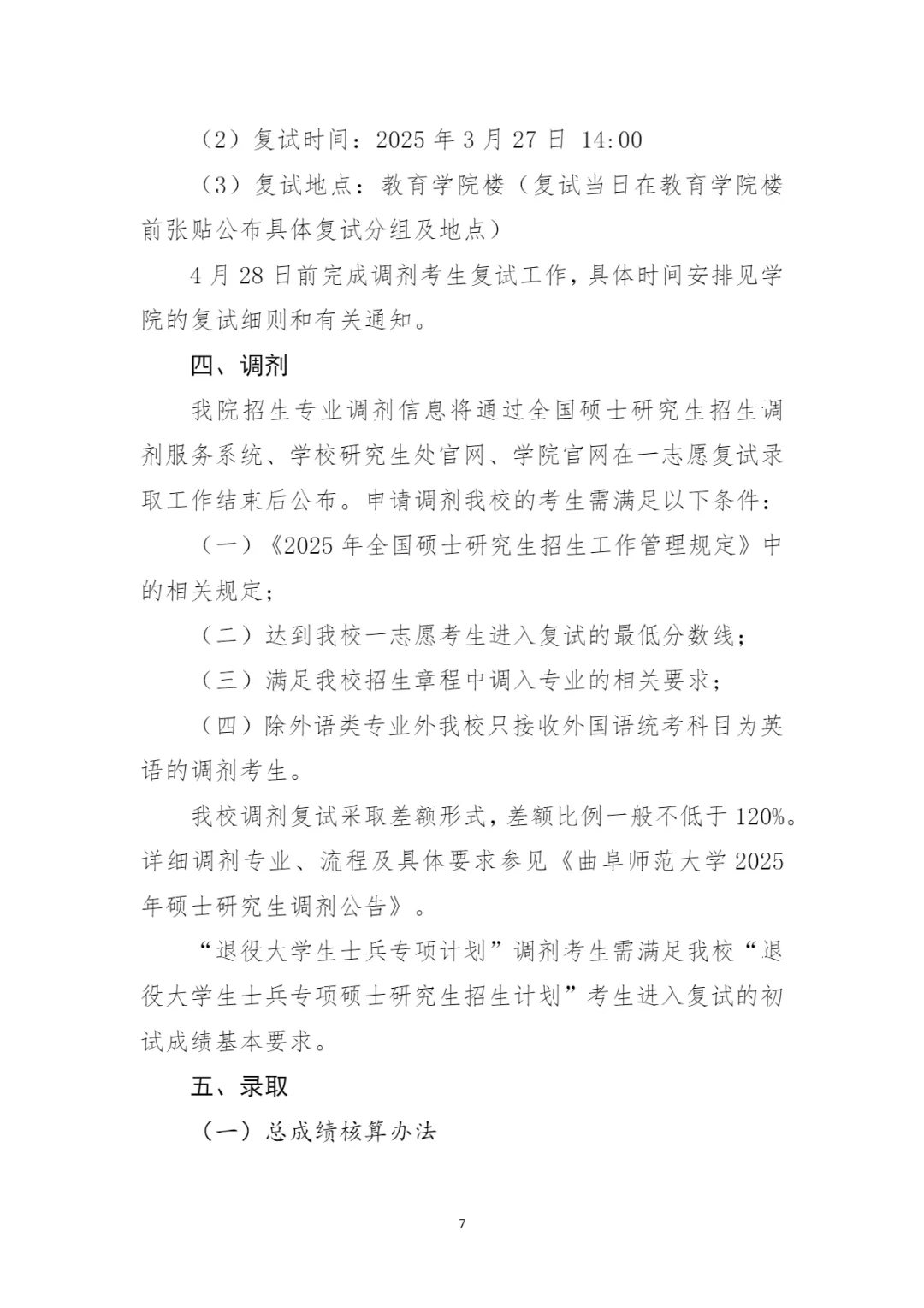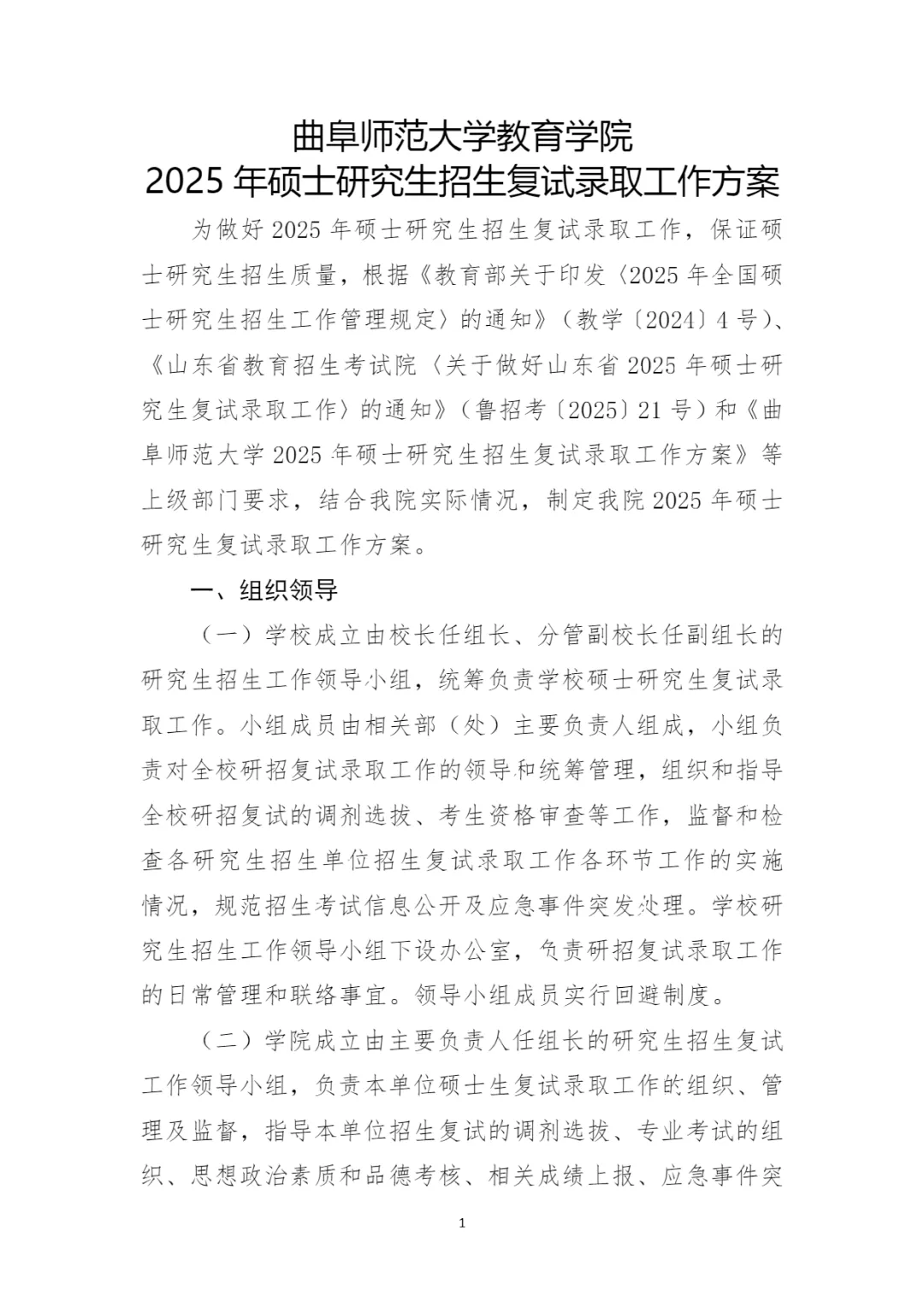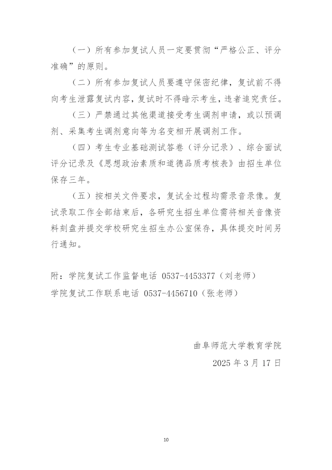 考研复试丨曲阜师范大学教育学院2025年硕士研究生招生复试录取工作方案