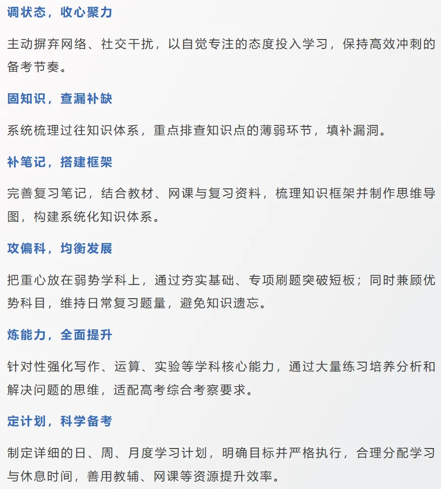 第一阶段:强化基础+专项突破,聚焦教材课本,针对薄弱章节集中刷题,总结解题模板与常见陷阱。