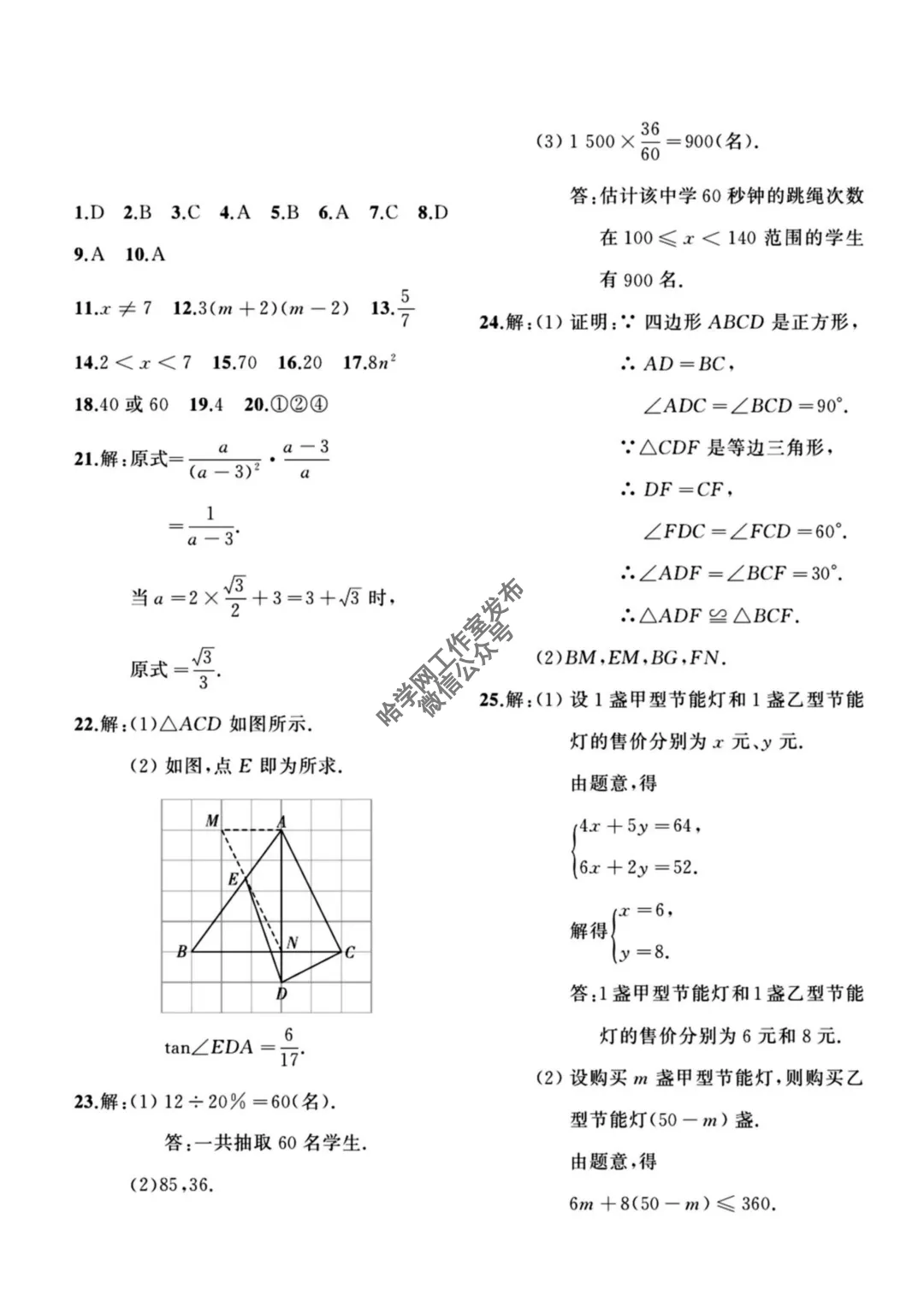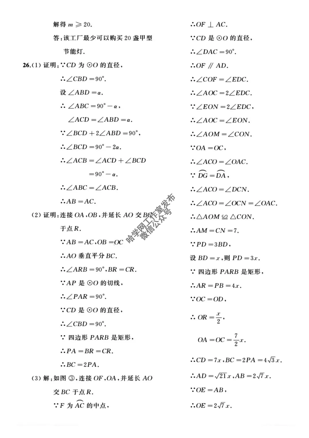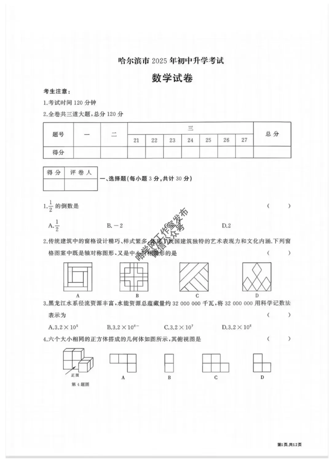 中考真题 | 哈尔滨市2025年初中升学考试-数学试题