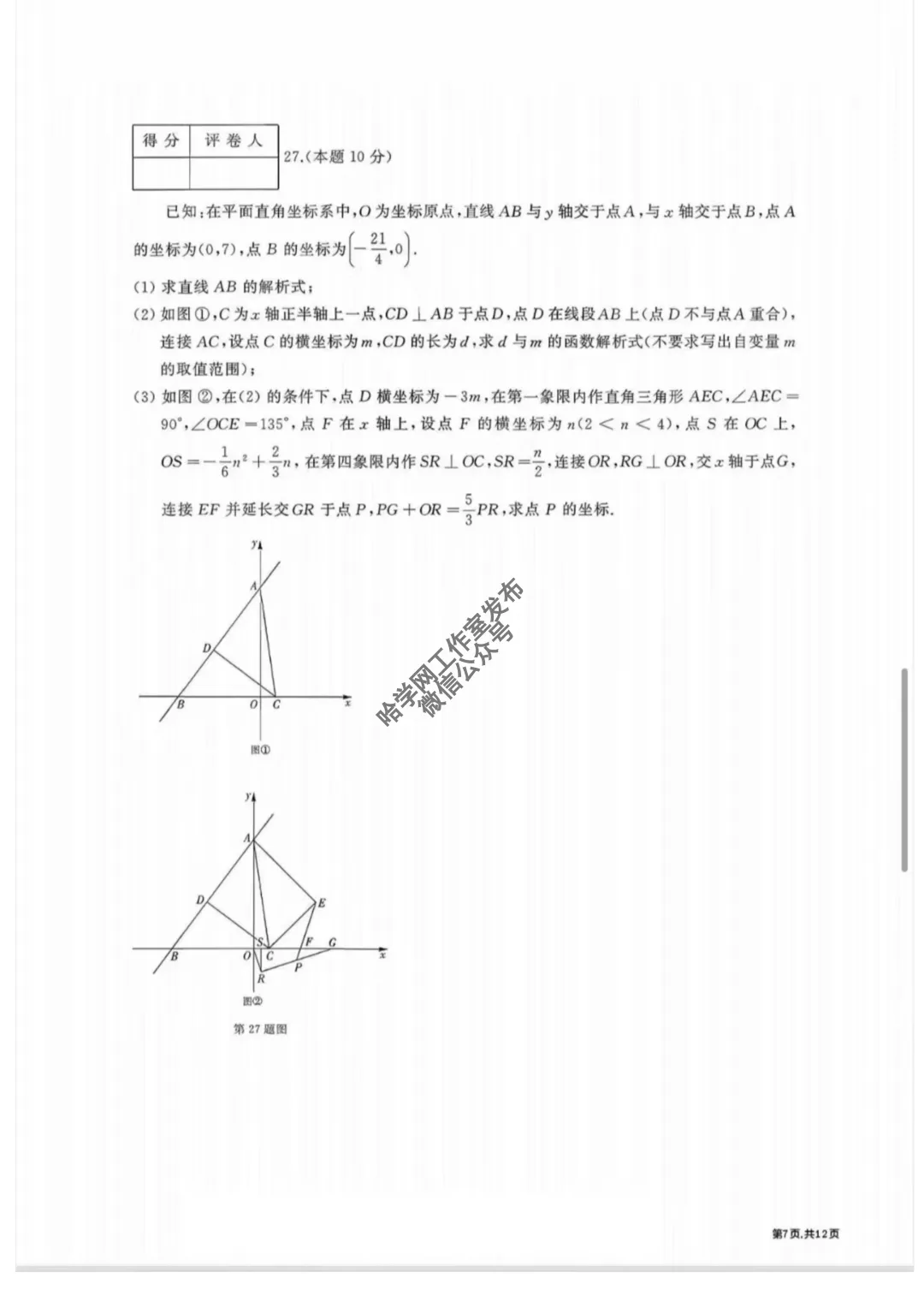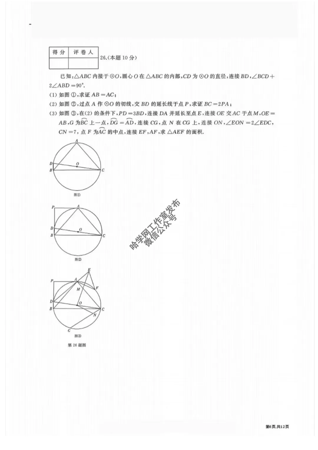 >中考真题 | 哈尔滨市2025年初中升学考试-数学试题