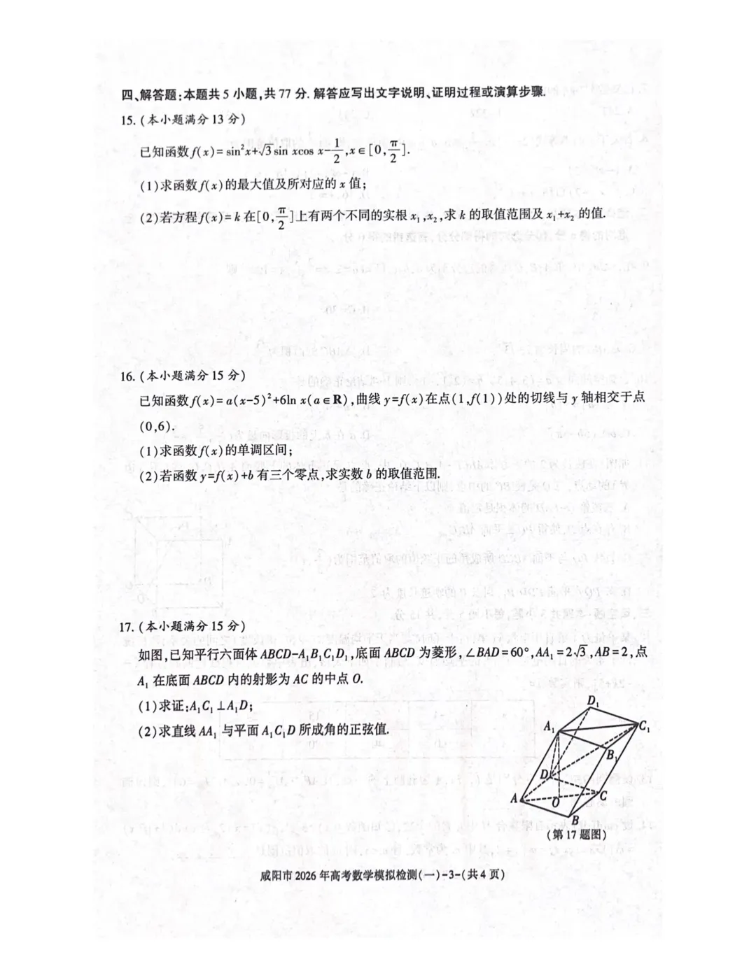 >咸阳市2026年高三一模考试数学试题