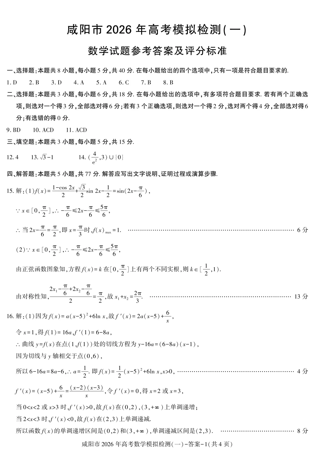咸阳市2026年高三一模考试数学试题