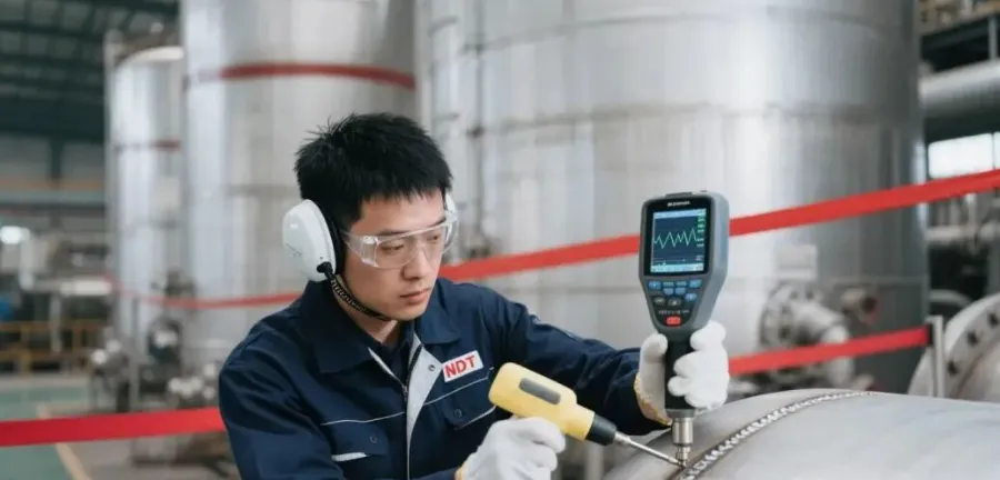 2. 超声波探伤(UT,Ultrasonic Testing)原理:利用超声波频率高(高于20000Hz)、波长短、能量高、穿透能力强、能定向传送并在界面上产生反射和折射及波形转换等特性,而进行材料内部缺陷检测的方法。应用范围:广泛应用于金属、塑料、混凝土等材料的检测,尤其在航空航天和核能领域。
