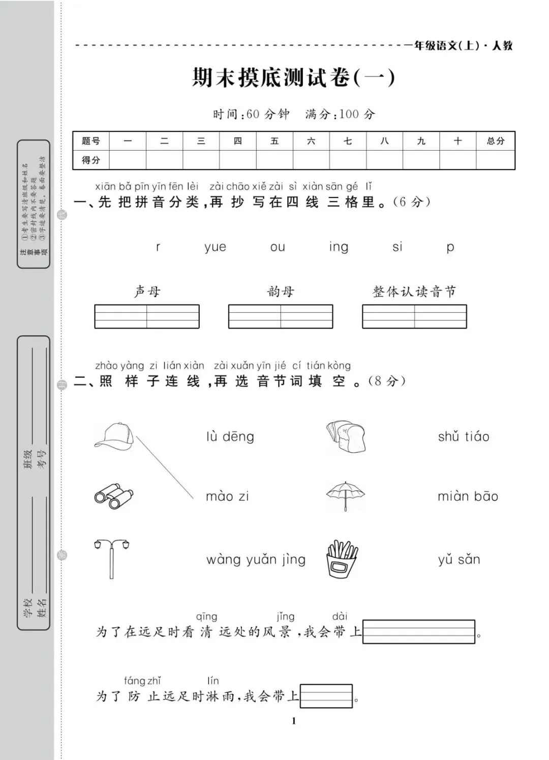 今天给大家分享的是:2025秋新版《期末考试卷》一年级上册语文期末测试卷 共13套 含答案 电子资料可下载 文末“阅读原文”可一键下载