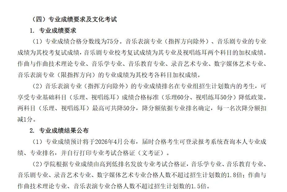 注意: 这意味着视唱练耳(乐理)不仅仅是及格门槛,其实际分数直接参与最终排名的计算。乐理分数的每一分都将影响最终的录取顺位。