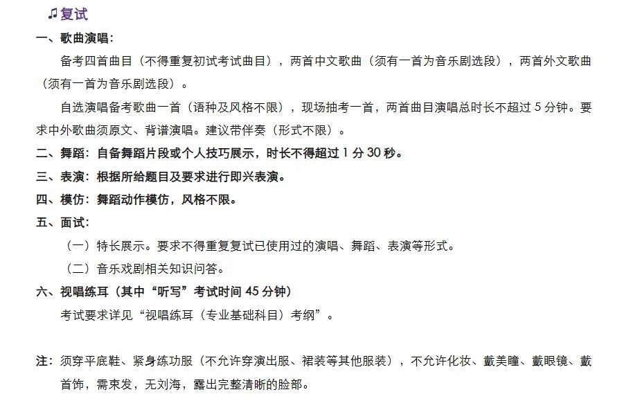 初试旨在快速筛查考生的嗓音本质与形体基本功,采取“去修饰化”的考核方式。