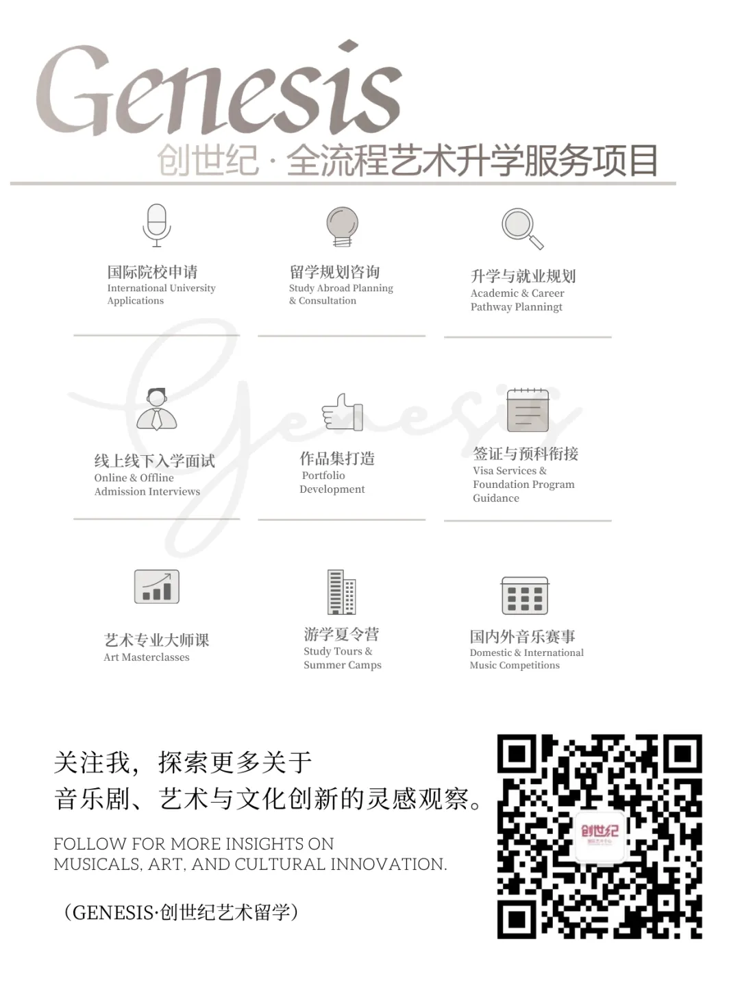 我们致力于“音乐剧 ×表演×音乐留学 × 流行演唱”的深度研究,以国际化的教学逻辑拆解国内考核要点。
