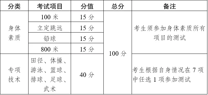 按照原国家教委、原国家体委颁发的《1989年普通高等学校体育专业招生体育考试评分标准与办法》《云南省2003年体育术科考试补充规则》以及《云南省女子足球考试评分标准与办法》要求执行。专业成绩满分为100分,其中身体素质成绩占60%,专项技术成绩占40%,总分达到60分者为合格。