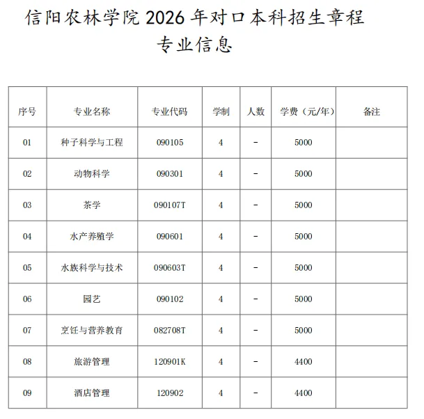 第一条 根据《中华人民共和国教育法》《中华人民共和国高等教育法》等法律和教育部、河南省教育厅关于2026年招生工作的有关规定,并结合学校实际情况,特制定本章程。本章程适用于信阳农林学院2026年对口本科招生工作。