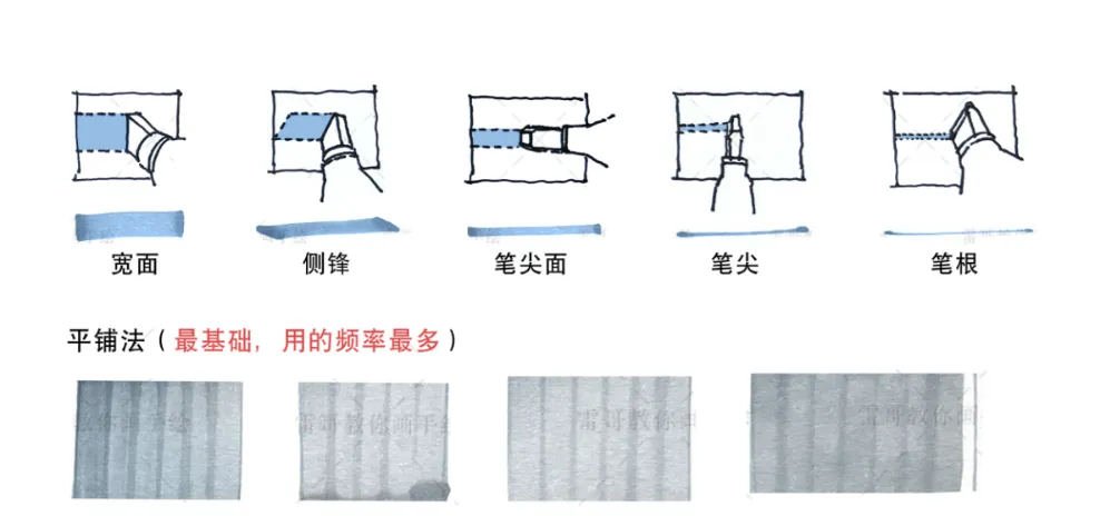 对于初学者应该要从基础部分开始着手学习,比如线条,透视造型等基础内容的训练,因此手绘工具需要的不需要特别多,前期用到的工具比较多的是笔类和纸类尺类等,墨线笔主要用到的是针管笔,钢笔看情况使用,考试会借助尺子来作图,用到钢笔的频率并不高,如果你是一个平时用手绘去做一点创作的同学的话,可以入手一支美工钢笔,钢笔的种类分为两张,感兴趣的可以自己去了解一下,这边不展开阐述。针管笔通常会准备三只,分别为0.3,0.5和0.7的型号,不管什么品牌,只要有粗细不同的针管笔都要准备好,这样有利于我们画图能呈现出粗细不同的画面节凑,例如在绘制室内平面图时,地面铺装线条通常来说都不会比家具轮廓线重,墙体线又比家具线重,这样一般我们会换不同粗细的笔去绘制。