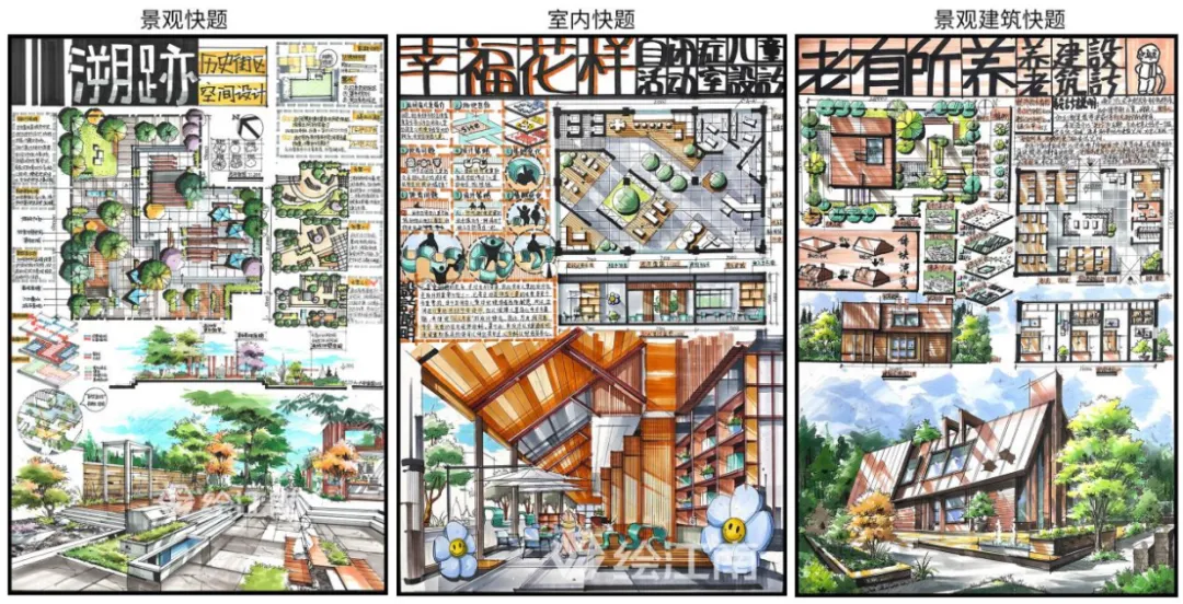 快题主要是考察学生的设计能力、表现能力、思维能力、排版能力、快速表达等方面的综合素质。