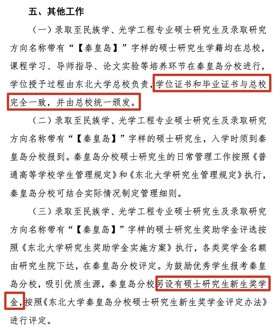 除了能够享受与主校区同等的奖学金之外,东北大学秦皇岛分校还额外设立了硕士研究生新生奖学金,彰显出其虽作为“本校”的一部分,但实际上却保持着高度独立运行的“分校”特色,且在招生、行政管理等多个领域拥有广泛的自主权。