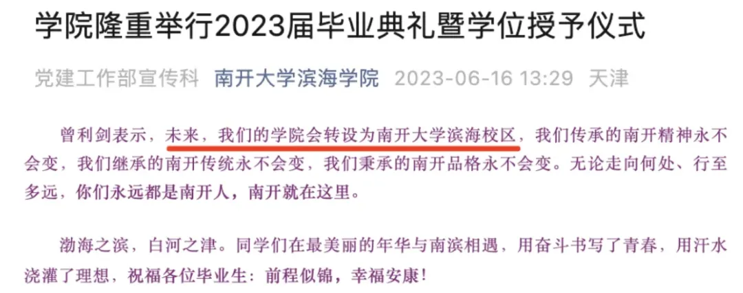 23年4月初,天津市委常委、滨海新区区委书记一行调研南开大学滨海学院。在不久的将来,南开大学滨海学院将并入母体学校成为南开大学的新校区。
