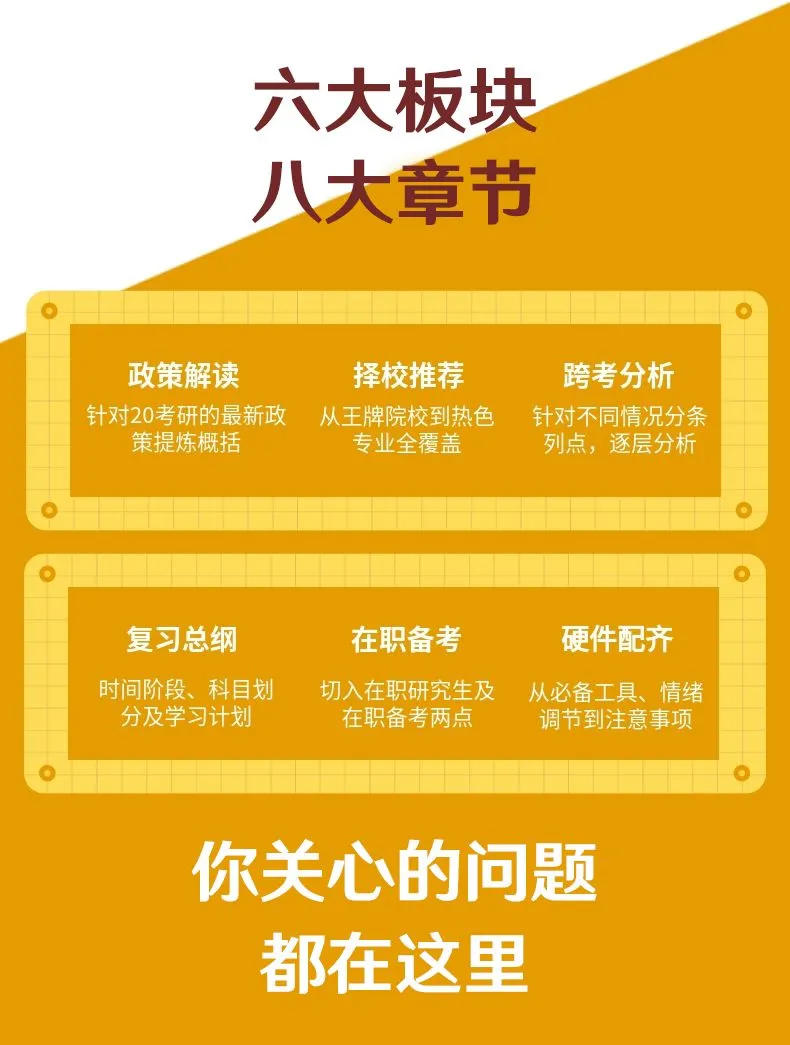 加入木仓会员中心,还可以免费领取《考研全程一本通》电子版,这本书堪称考研百科全书,由超过10人的985/211研究生团体,耗时半年编写,并进行四次修订(今年还会持续修订),总共150页左右,内容涵盖从你刚开始准备考研到考研结束整个过程,所有你担心的、不理解的问题都可以通过这本书得解决。