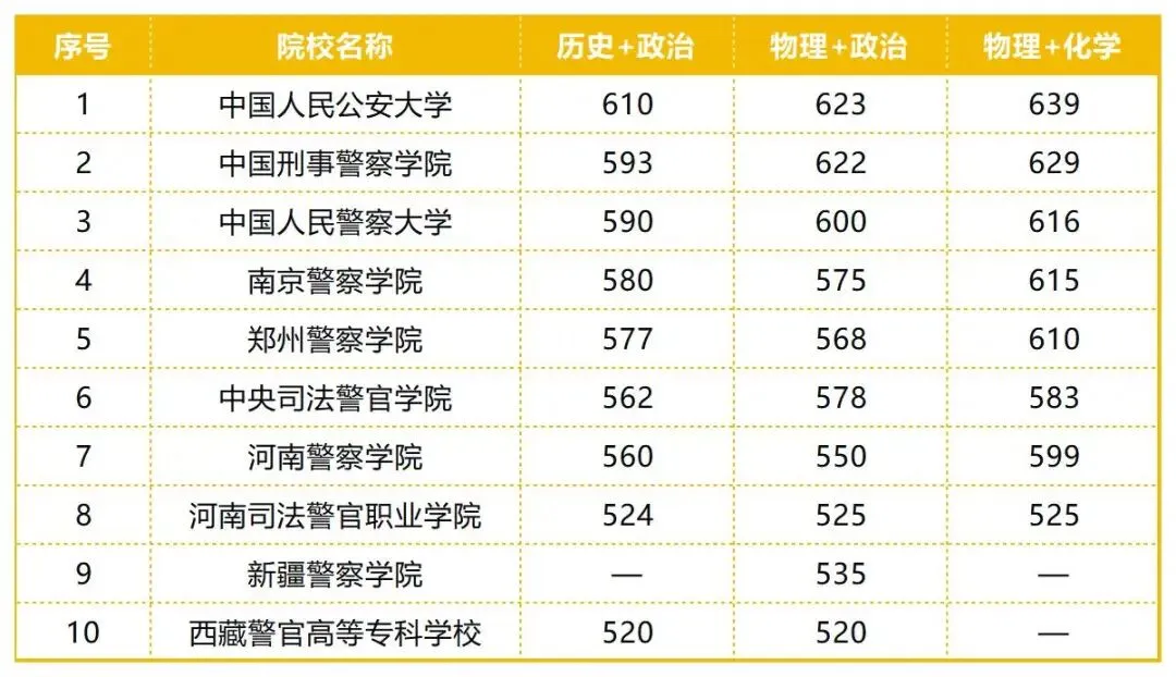 •"物理+化学"分数最高:中国人民公安大学此组合639分登顶,凸显公安技术类专业要求。