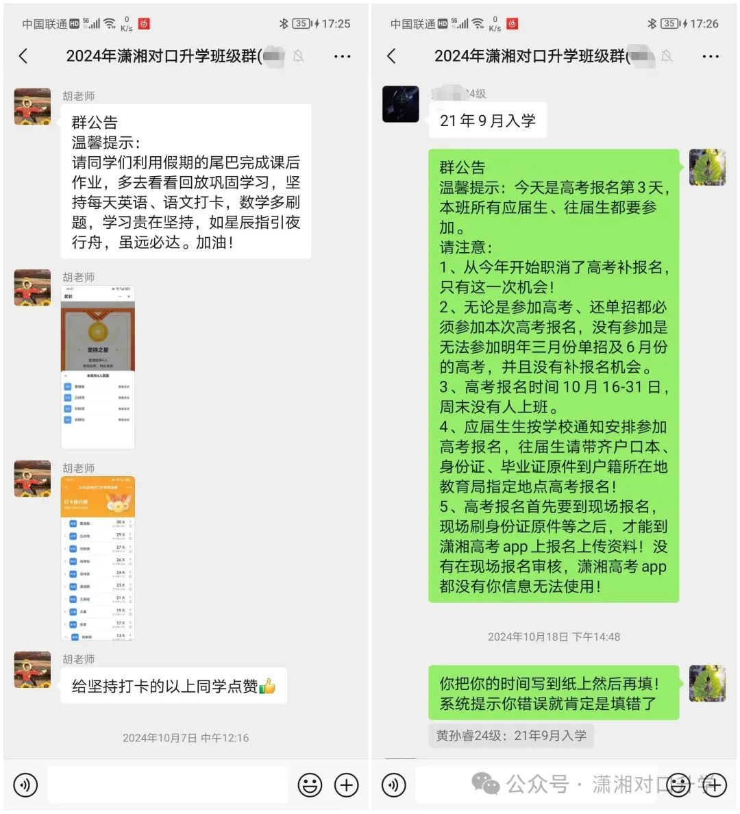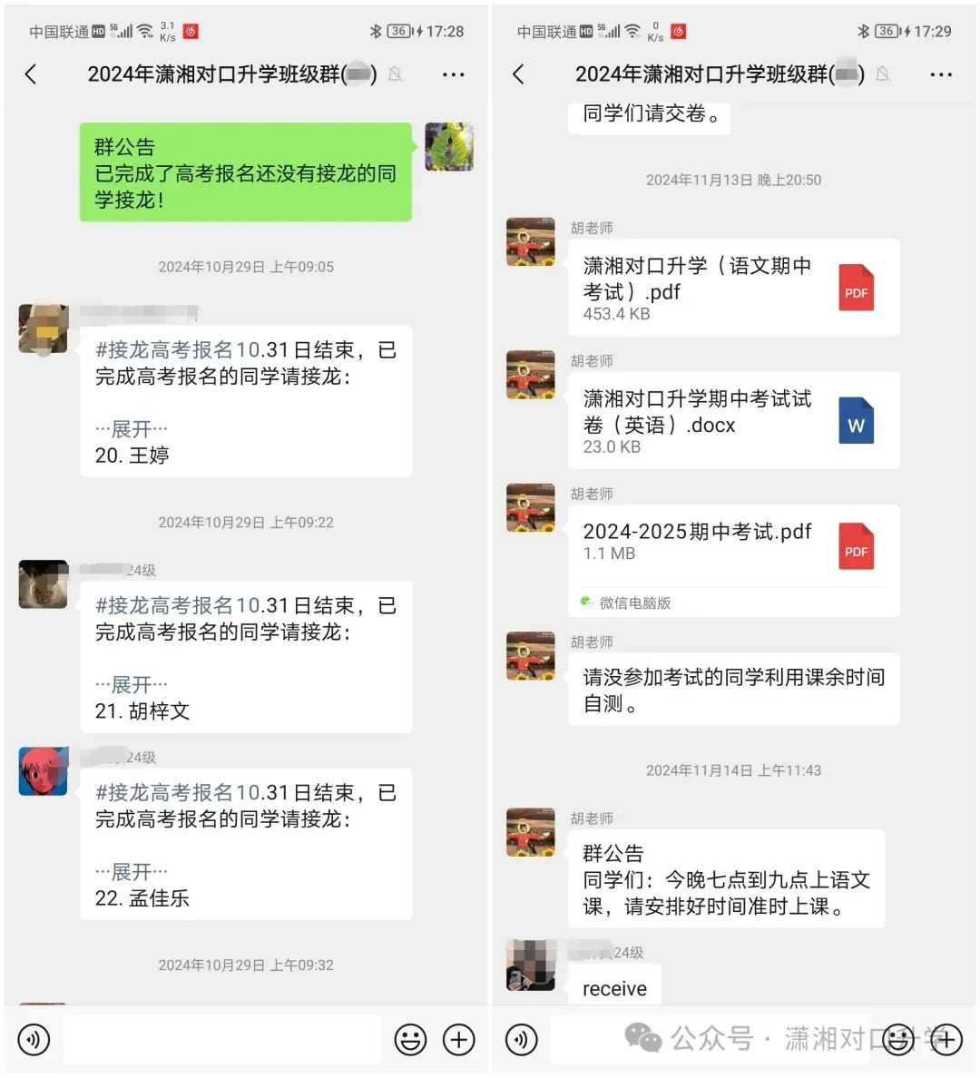 潇湘对口升学有班主任专人负责,从学生报名入学、安排上课、上课的课堂管理、作业管理、考试、高考报名指导、单招报名指导、学习资料发放等等都有专业的班主任进行管理。
