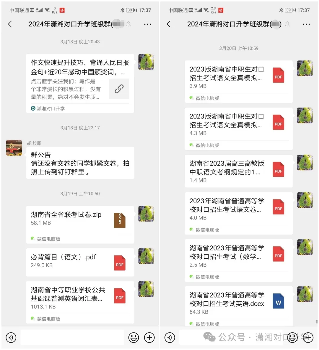潇湘对口升学在教学过程当中,不但有学、教、读、背、练、背等教学方式,还提供大量的资料给学生练习,助力高考。看图: