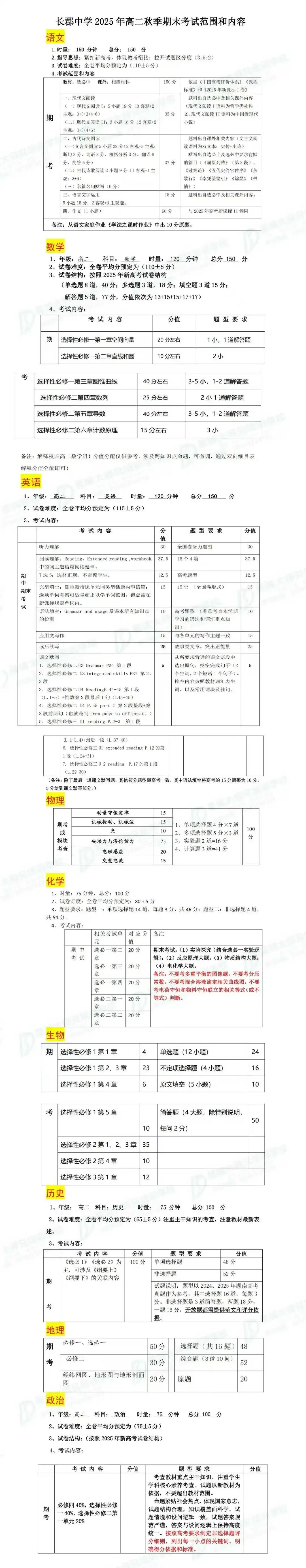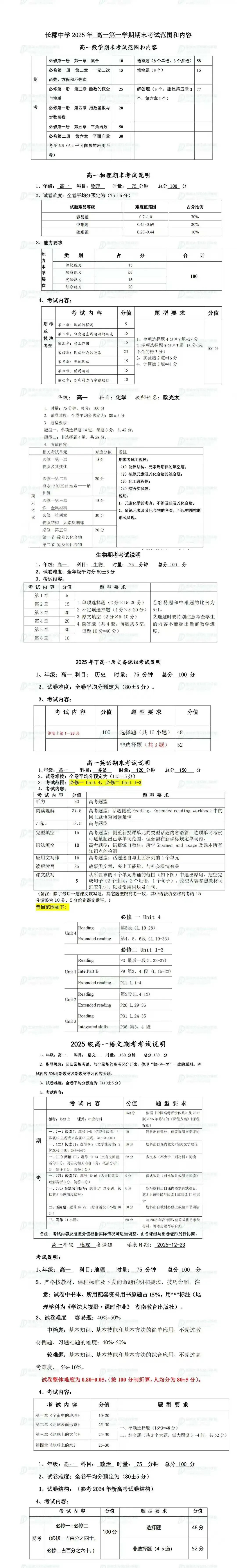 长郡高一、高二、高三期末考试安排及考试范围(可免费领取期末一本通纸质版)
