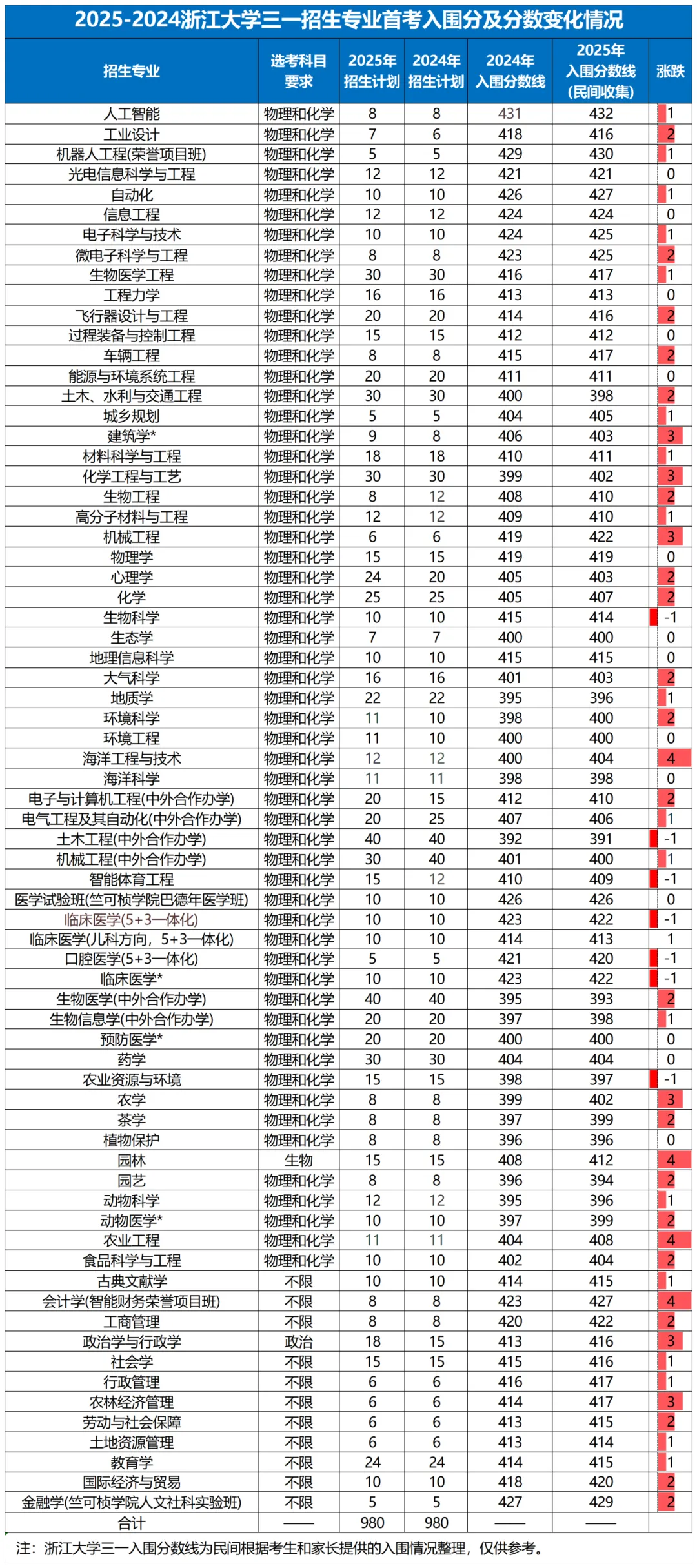 浙大新增工业设计、智能体育工程等专业招生名额,减少海宁机械等名额,人工智能不再为荣誉项目。