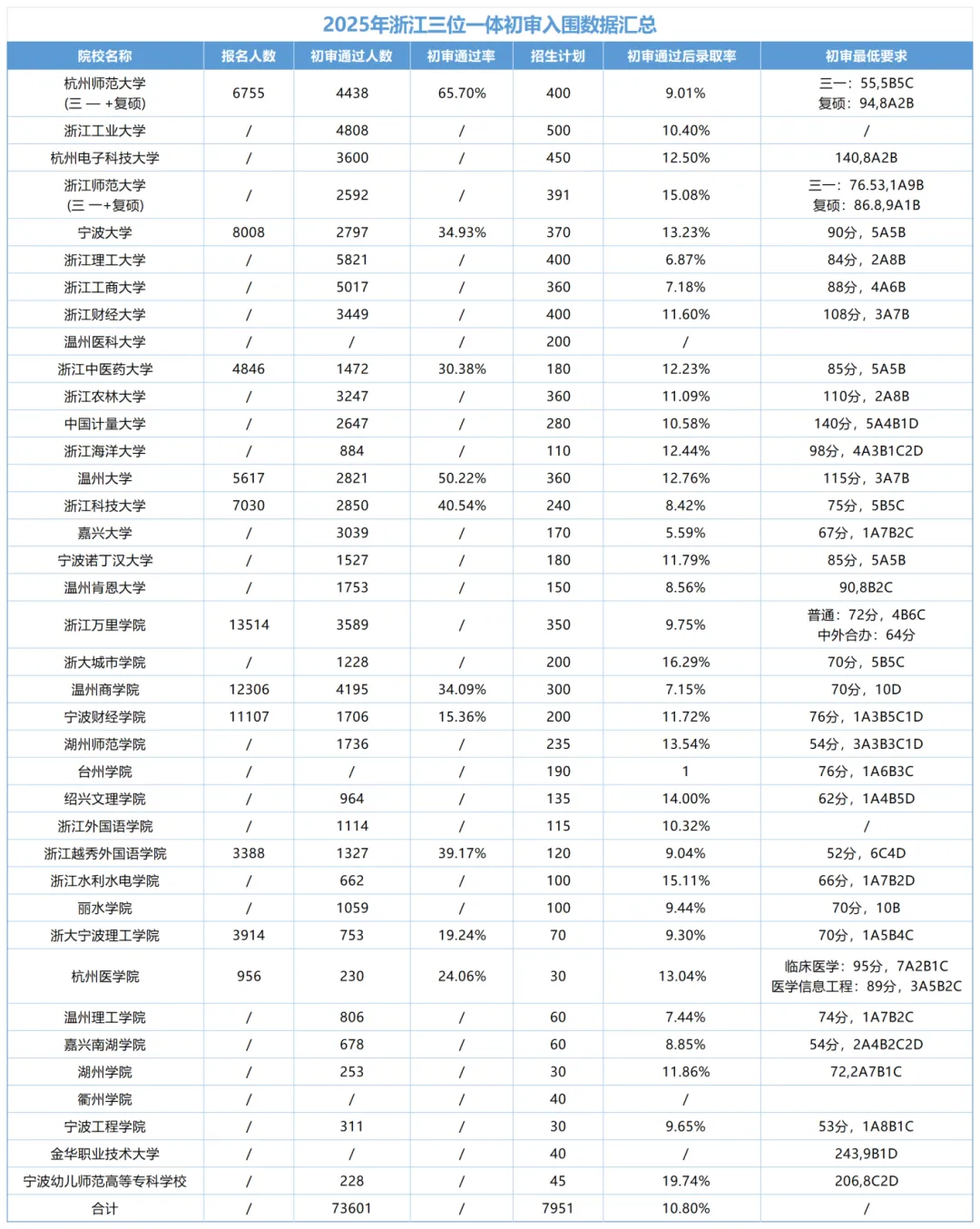 *注:三位一体在浙江分为高水平三位一体和省内三位一体。