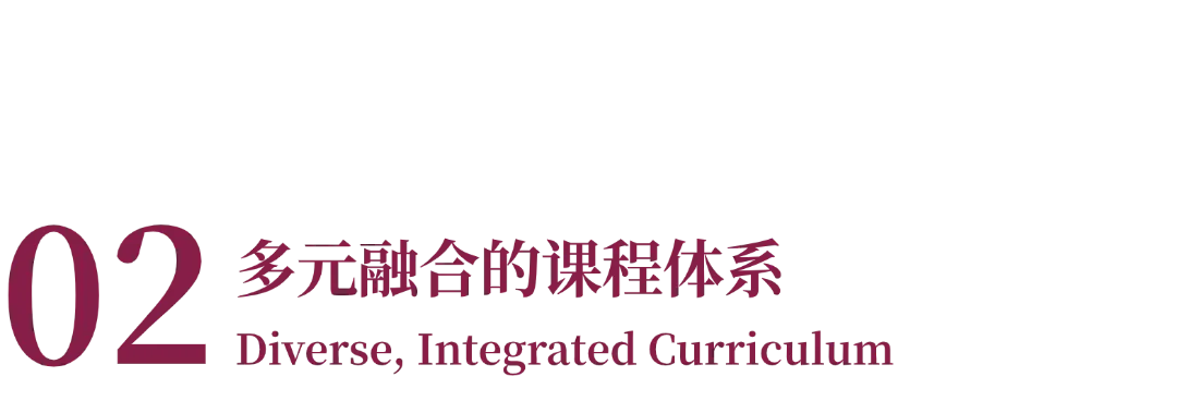 中西融合的核心课程:学校核心课程执行国家课程,并融入剑桥国际课程和IB国际课程体系的理念与内容,形成“语言与文化”、“公民与社会”、“科学与数学”、“艺术”、“体育与健康”五大门类。