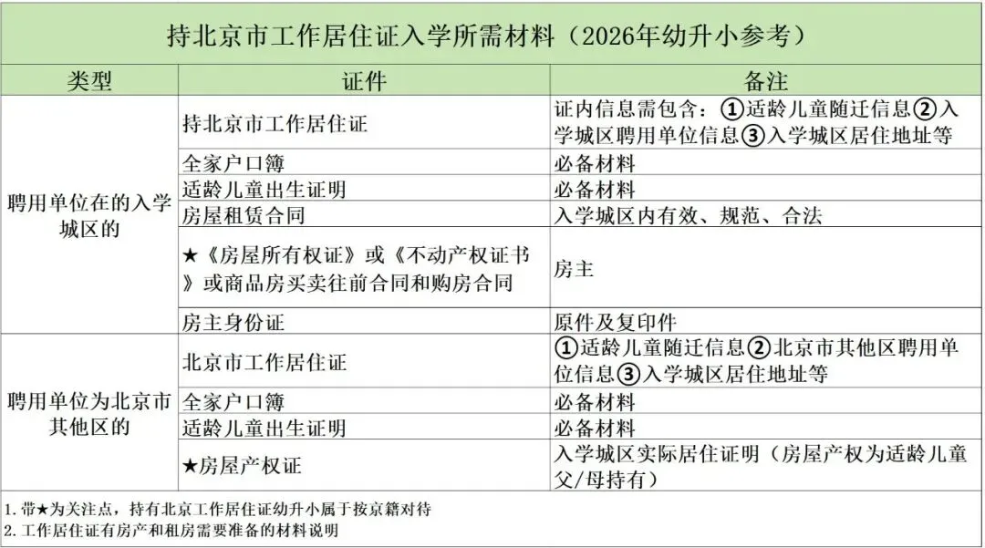 另外有信息公布,2026幼升小持有北京工作居住证可按京籍对待入学,无需四证,但需要注意的是:部分区要求,提供社保!