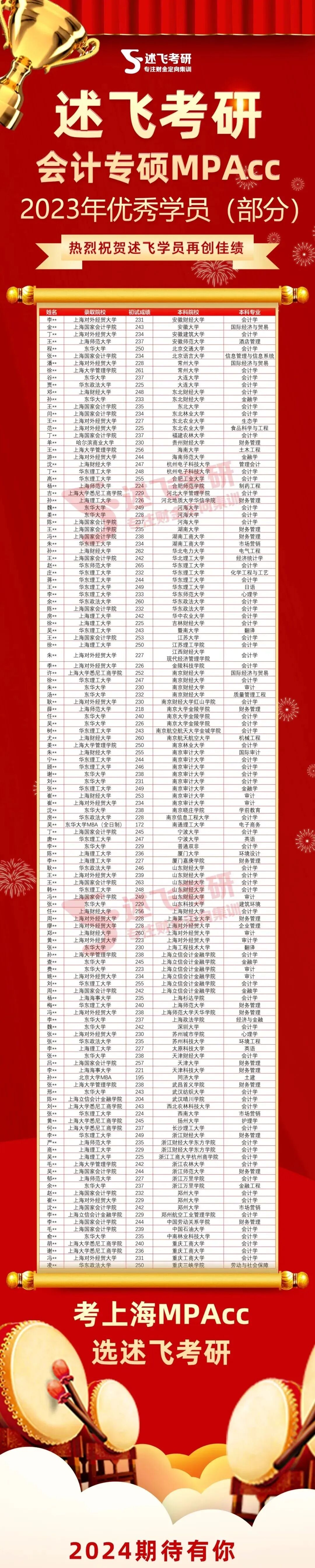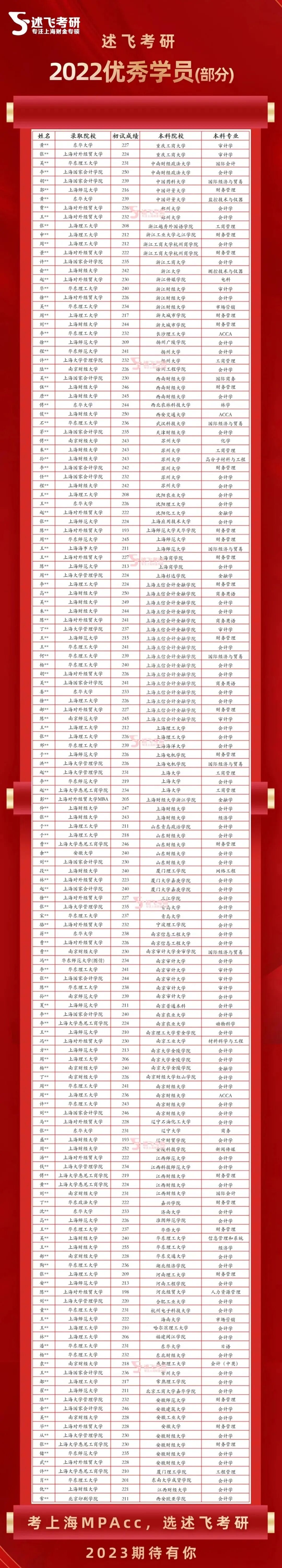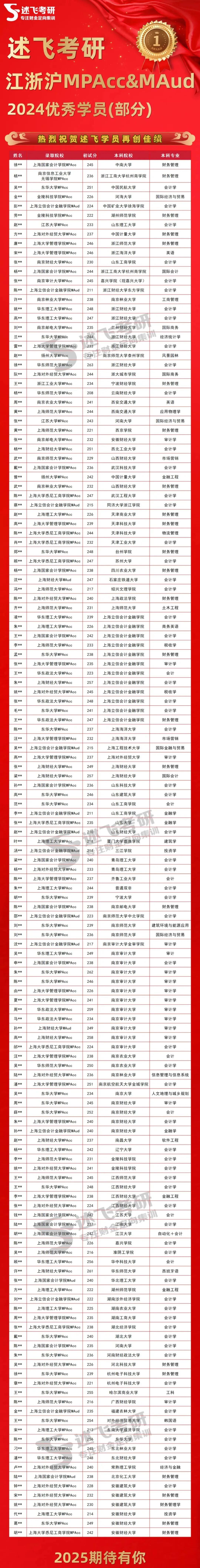 【述飞考研】成立于2016年,深耕上海地区MPAcc&MAud院校九年,至今已近1050位学生被上海地区MPAcc&MAud录取,平均每5位上海MPAcc&MAud院校上岸的学生就有1位来自述飞!