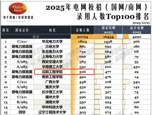 这所高校位于辽宁省沈阳市,第一眼看上去,大多数家长和考生可能都会嫌弃地理位置太过于偏远。但是,这所高校拥有一个全国99%的高校都没有的优势!即人家是“原电力部直属本科高校”!每年都有很多毕业生可以进入国家电网!以2025年为例,沈阳工程学院共有506人进入国家电网和南方电网就业,位列全国第7,比很多985高校都多!国家电网有多香大家肯定都是知道的,只要能进去,基本上可以算是逆天改命。而除了进入电网的毕业生比较多这一点,沈阳工程学院还有45%的毕业生可以进入国有企业就业。吉林物理类能源与动力工程最低录取分为536,贵州物理类机械设计制造及其自动化最低录取分为506,山东自动化最低录取分为548。真的算是一点都不高!时哥强烈建议普通家庭成绩一般的考生,可以重点关注了解一下这所高校。跟沈阳工程学院拥有的强大背景相比,贵州理工学院这所高校就显得非常一般了。学校成立时间很短,距今不过十来年,所有专业中也只有飞行器制造工程和机械设计制造及其自动化2个专业是国家级一流本科专业建设点。然而,就是这样一所各方面都很一般的高校,却拥有非常不错的就业!最新的就业数据显示,贵州理工学院毕业生有50%以上都能进入国有企业就业!学校的录取分数线同样也不高,2025年高考录取中,江苏物理类智能制造工程最低录取分为504,贵州物理类自动化最低录取分为508,山东机械电子工程最低录取分仅为494。这所高校看上去也非常一般,没有强大的背景,没有强大的实力,在各大高校排行榜中也是长期处于500名开外的位置,根本无人在意。只是让人没想到的是,这所毫不起眼的高校却拥有着能够碾压985的就业。学校发布的最新的就业数据显示:毕业生有6成以上都在国有企业就业!河北物理类机械电子工程最低录取分为537,山西物理类机械设计制造及其自动化最低录取分为509,山东自动化最低录取分为490。整体来说,这3所高校都拥有非常高的性价比,大家可以做个参考。最后也预祝大家都能在2026年高考中取得一个理想成绩!注:本文部分内容来源于网络,如有不实或者表述不当之处,欢迎大家及时指出!侵删!