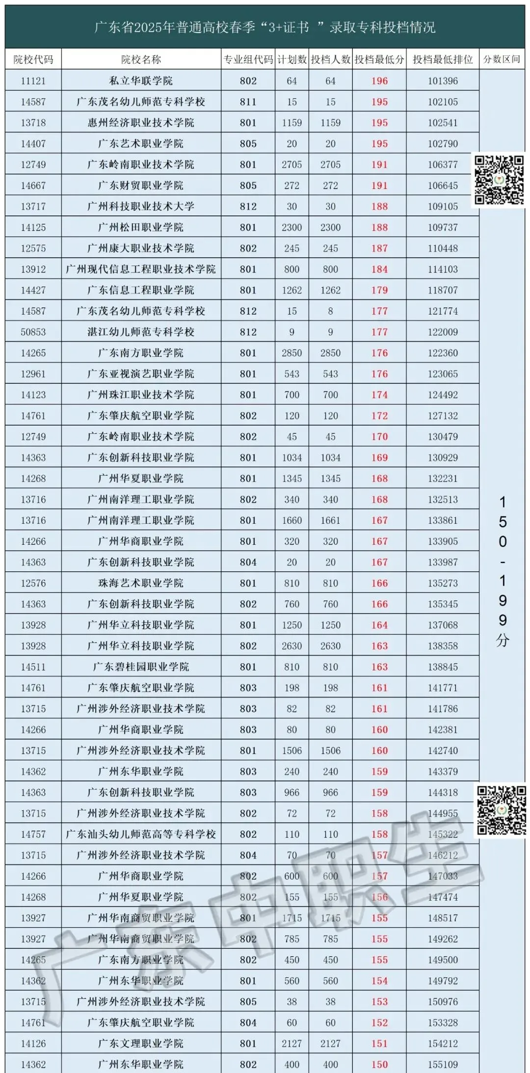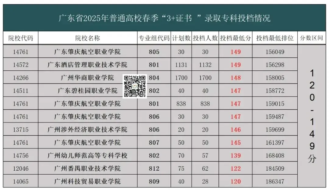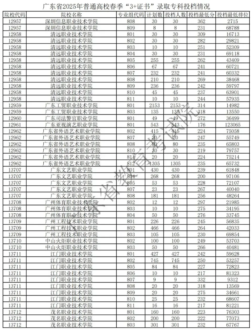 点击下方名片,关注【广东中职生】公众号,为您提供专业的备考指导、考试资讯、政策解读、报考分析及高校信息等,关注我们,不错过读大学的重要信息!2026年3+证书高考告一段落了,很多考生好奇自己可以报什么学校,大撕兄根据广东省考试院发布的2025年3+证书投档情况,从高分段到低分段对学校进行整理,大家可以参考一下,对今年填志愿会有帮助!重要提醒,分数只是填志愿参考的一部分,比分数更重要的是你的省排位。
