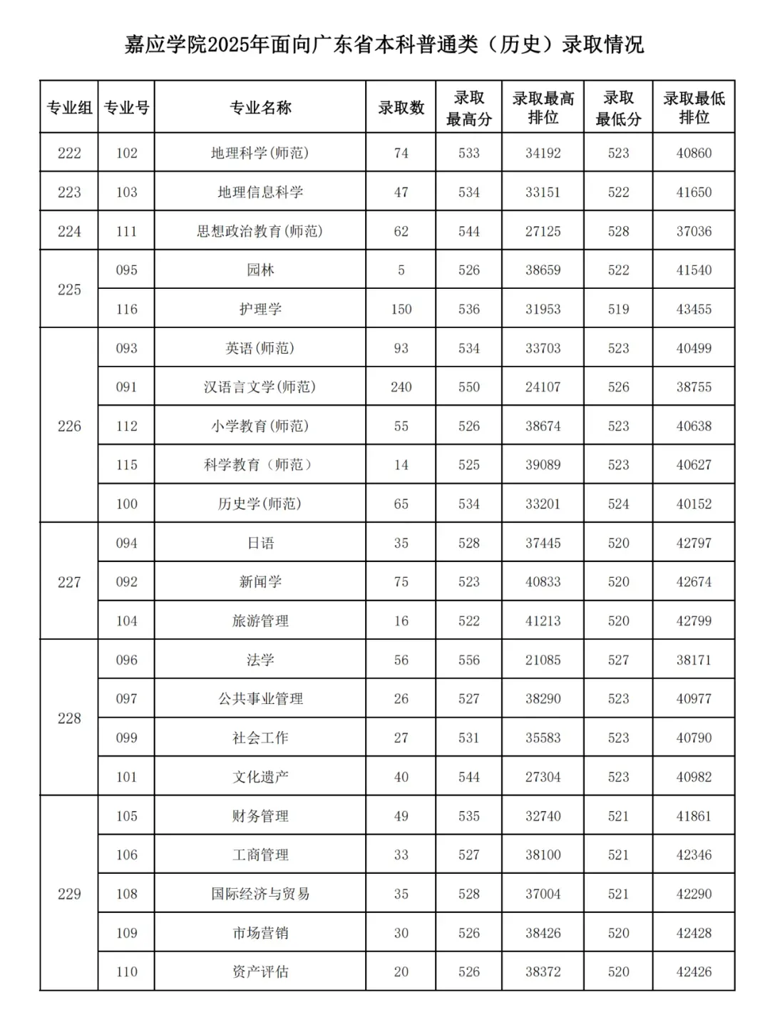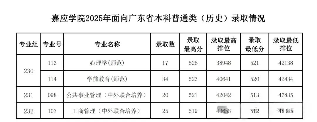 >嘉应学院2025年各专业录取分数线!